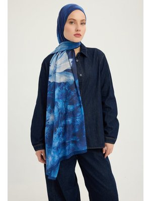 ŞALESS 70x190 Cm Zamansız Hayal Lacivert Efilia Desenli Şal