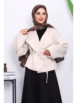 İmaj Butik Taş Şal Yaka Scuba Puf Kısa Ceket
