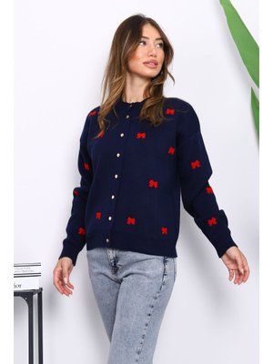 İmaj Butik Lacivert Fiyonk Nakışlı Triko Hırka