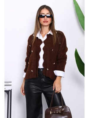 İmaj Butik Kahverengi Düğme Detaylı Angora Yumoş Triko Hırka