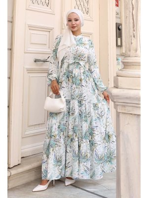 Bigdart Y.yeşil Desenli Uzun Elbise