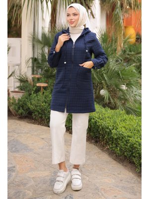 İmaj Butik Lacivert Kapitone Fermuarlı Cepli Kap