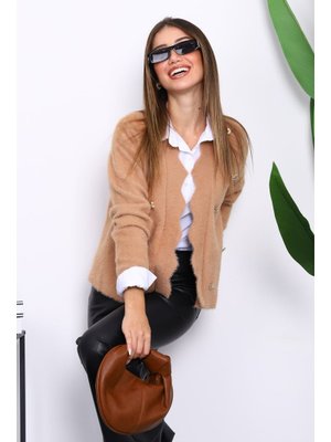İmaj Butik Bisküvi Düğme Detaylı Angora Yumoş Triko Hırka