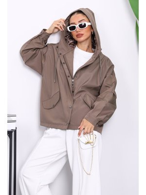İmaj Butik Vizon Kapüşonlu Çıtçıt Detaylı Kısa Trençkot