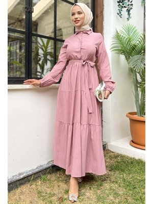 Tofisa Gül Kuşaklı Kat Kat Elbise