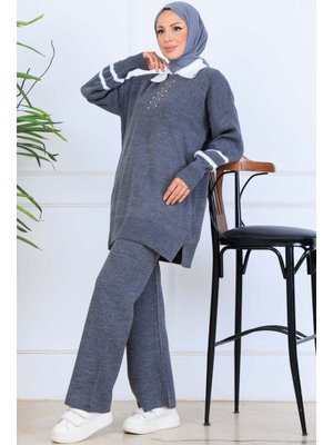Benguen Antrasit Taş İşlemeli Triko Takım