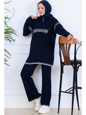 Benguen Lacivert Yakası Fermuarlı Triko Takım
