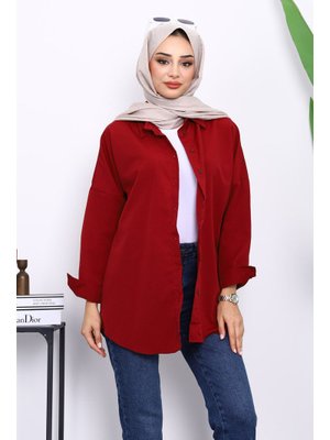 İmaj Butik Bordo Düğmeli Salaş Terikoton Gömlek