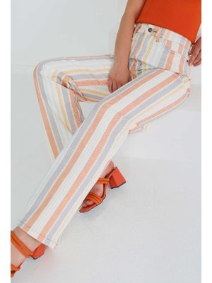 Tofisa Renkli Çizgili Palazzo Pantolon