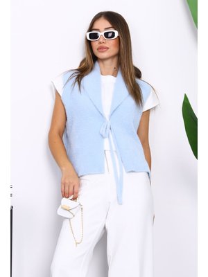 İmaj Butik Bebe Mavi Ön Bağlamalı Kısa Angora Yumoş Yelek