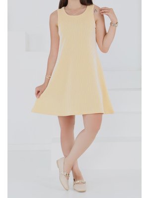 Tofisa Sarı Su Yolu Fermuarlı Elbise Sari