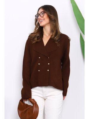 İmaj Butik Kahverengi Kruvaze Yaka Düğmeli Triko Hırka