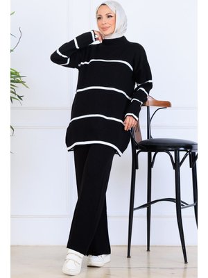 Benguen Siyah Fitilli Çizgili Triko Takım