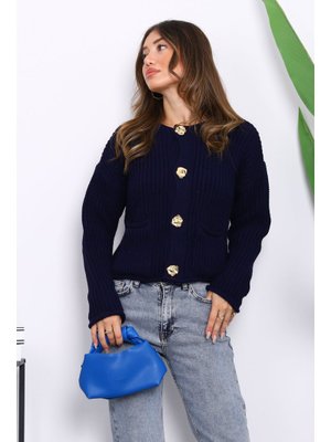 İmaj Butik Lacivert Selanik Örgülü Kısa Triko Hırka