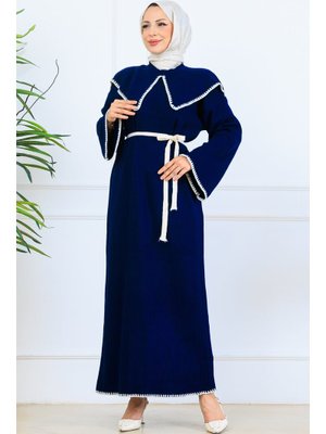 Benguen Lacivert Yaka Detaylı Triko Elbise