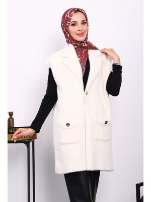 İmaj Butik Krem Cepli Uzun Angora Yumoş Yelek