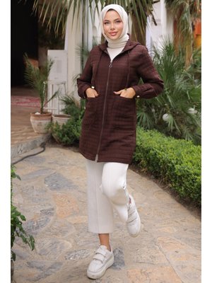İmaj Butik Kahverengi Kapitone Fermuarlı Cepli Kap