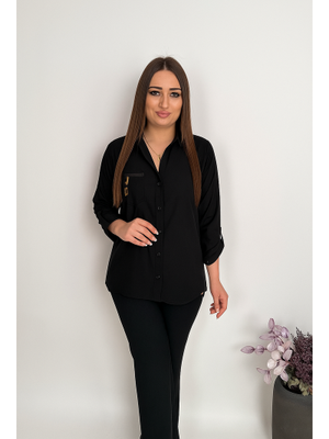 De White`s Siyah Büyük Beden Gizli Cep Detaylı Gömlek