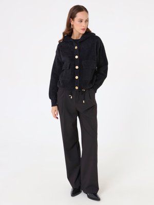 Refka Siyah Gold Düğme Detaylı Bağlamalı Hırka