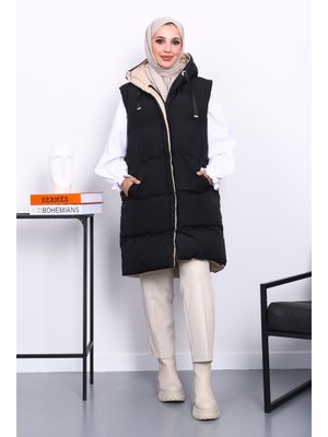 İmaj Butik Siyah Çift Taraflı Kapüşonlu Şişme Yelek