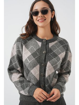 Bigdart Antrasit Desenli Düğmeli Triko Hırka