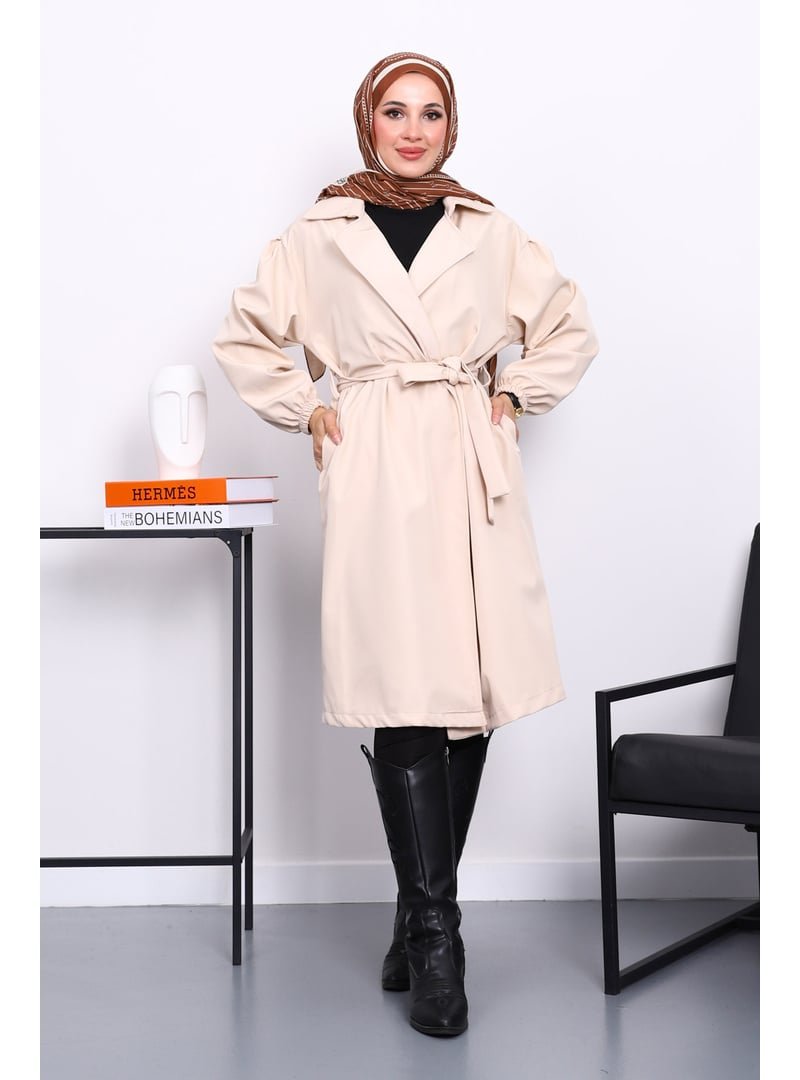 İmaj Butik Bej Kruvaze Yaka Kuşaklı Trençkot