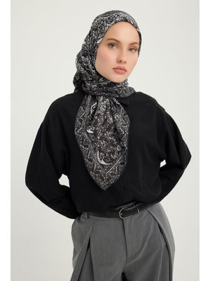 ŞALESS 90x90 Cm Ebedi Saraylar Siyah Vierra Desenli Viskon Eşarp