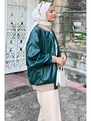 Neva Style Düğmeli Zümrüt Yeşili Deri Ceket 9264zy