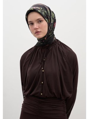 FRESHSCARFS Siyah Flower Rain Desen Pamuklu Viskon Eşarp