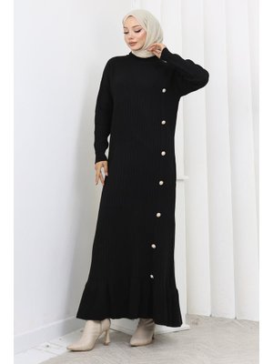 Benguen Siyah Yan Düğmeli Fırfırlı Elbise