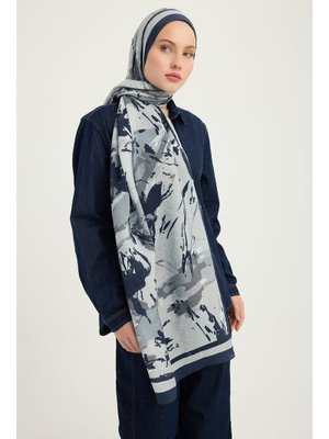 ŞALESS 70x190 Cm Özgür Fırçalar Lacivert Vierra Desenli Viskon Şal