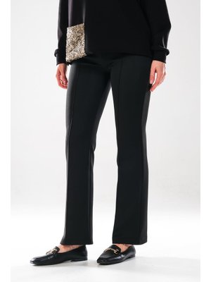 Plistre Gizli Fermuarlı Şık Pantolon 2292_ Scuba Kumaş Flare Yüksek Bel, Nervür Detaylı,