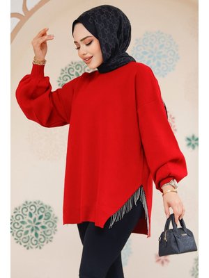 Neva Style Zincir Detaylı Kırmızı Kazak Tunik 17202k