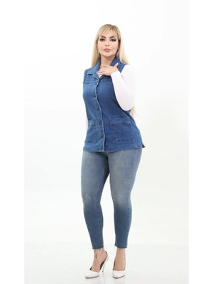 IŞŞIL Mavi Büyük Beden Esnek Cepli Kot Yelek