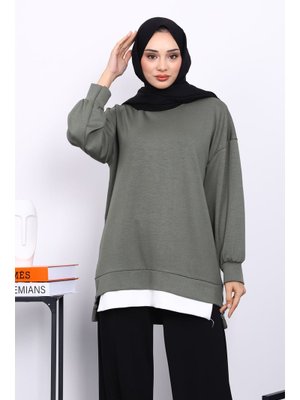 İmaj Butik Haki Bisiklet Yaka Yan Fermuarlı Tunik