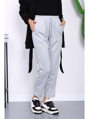 İmaj Butik Açık Gri Beli Lastikli Cepli Double Pantolon