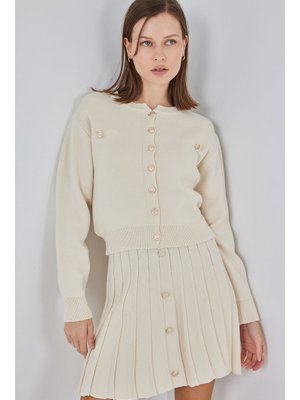 Bigdart Krem Triko Hırka Etek İkili Takım