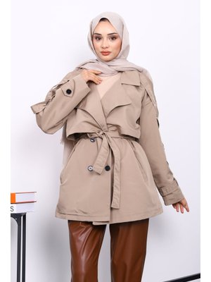 İmaj Butik Vizon Kruvaze Yaka Astarlı Kısa Trençkot