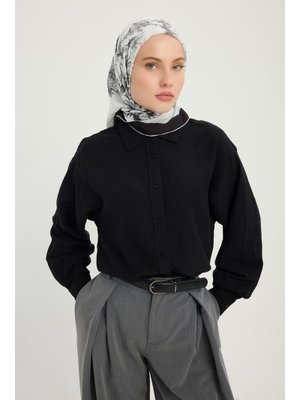 ŞALESS 90x90 Cm Sessiz Botanik Gri Vierra Desenli Viskon Şal Eşarp
