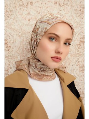 ŞALESS 90x90 Cm Ebedi Saraylar Bej Vierra Desenli Viskon Eşarp