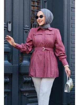 Neva Style Düğmeli Gül Kurusu Gömlek 19028gk