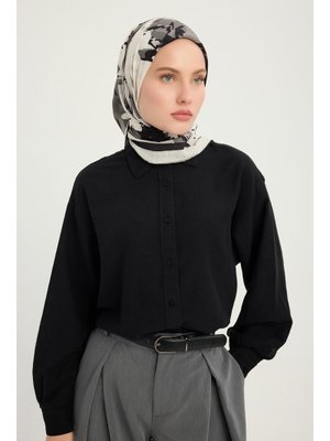 ŞALESS 90x90 Cm Özgür Fırçalar Gri Vierra Desenli Viskon Eşarp
