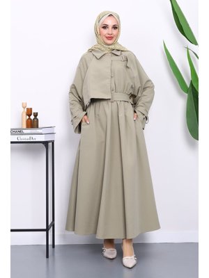 İmaj Butik Haki Bel Lastikli Kemerli Trenç