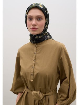 FRESHSCARFS Siyah Tıny Daısy Desen Pamuklu Viskon Eşarp