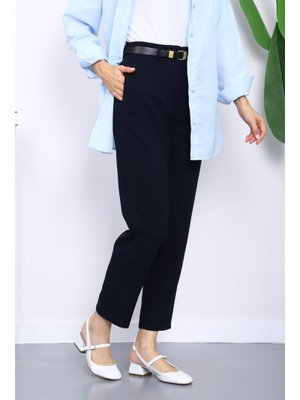 İmaj Butik Lacivert Kemerli Önü Pensli Havuç Kumaş Pantolon