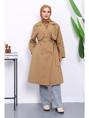İmaj Butik Bisküvi Kravuze Yaka Kuşaklı Cepli Trençkot
