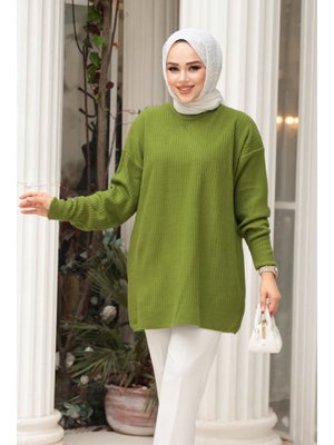 Neva Style Fitilli Fıstık Yeşili Triko Kazak Tunik