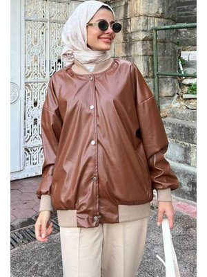 Neva Style Düğmeli Taba Deri Ceket 9264tb