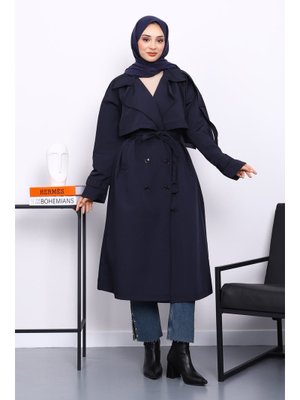 İmaj Butik Lacivert Kruvaze Yaka Astarlı Trençkot