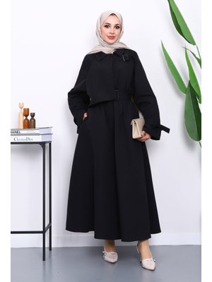İmaj Butik Siyah Bel Lastikli Kemerli Trenç